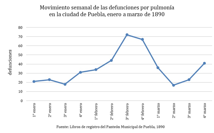 En Puebla, mientras tanto, el año había comenzado con normalidad. El invierno transcurría sin sobresaltos, la vida sucedía en paz y tranquilidad. Las enfermedades observadas eran propias de la época en la que las afecciones del sistema pulmonar dejaban su secuela, especialmente entre la población más desprotegida. Las noticias que llegaban de la capital de la República alteraban la vida de los sectores más ilustrados, pero Puebla parecía mantenerse “distante” de los acontecimientos. La última semana de febrero, cuando las defunciones comenzaron a elevarse, la alarma sonó, “despertando” del letargo provinciano ante la cruda realidad. La influenza arribó a la ciudad proveniente de la capital mexicana.