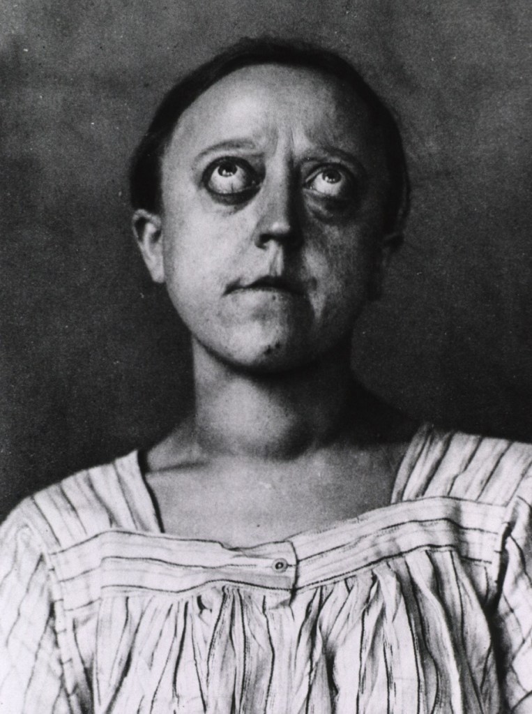 [Endocrine Disorders: Woman with Exothalmic Goiter]. photogravure. <a href=»https://www.nlm.nih.gov/hmd/ihm/index.html»>U.S. National Library of Medicine (NLM): Images from the History of Medicine</a>, JSTOR, https://jstor.org/stable/community.28541848. Accessed 2 Oct. 2023.